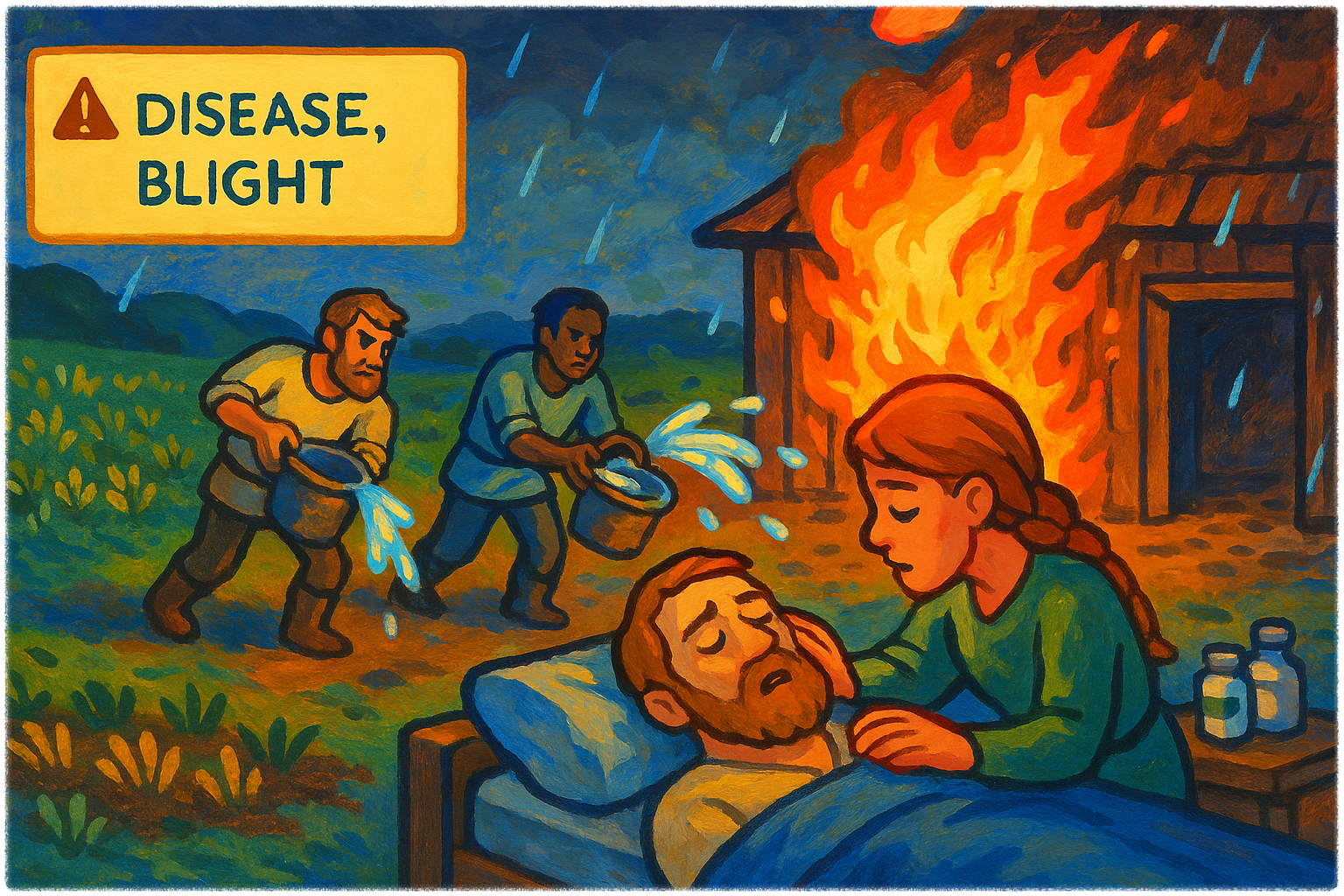 내 감자밭이 병충해에 걸렸다고 한다. 식량은 조금 줄었지만 아직 괜찮다. 병충해에 걸린 감자를 모두 없애고 다시 농사를 짓는다.